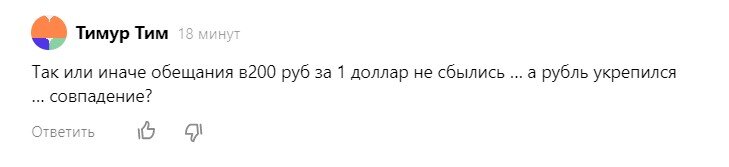 Поскольку в комментариях к моим статьям до сих пор, чуть ли не ежедневно вспоминают Байдена и его 200 рублей за доллар, вот свежий пример такого комментария,