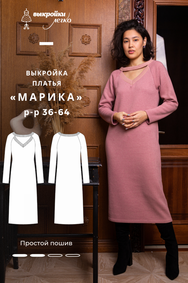 НОВИНКА на сайте "Выкройки-легко" PATTERNEASY.COM 🔥 Трикотажное платье "Марика". Платье подчёркивает только плавные изгибы и скрывает то, что не хотелось бы показывать. Изюминка платья - двойной ворот-горловина и пикантный вырез-декольте. Описание модели: