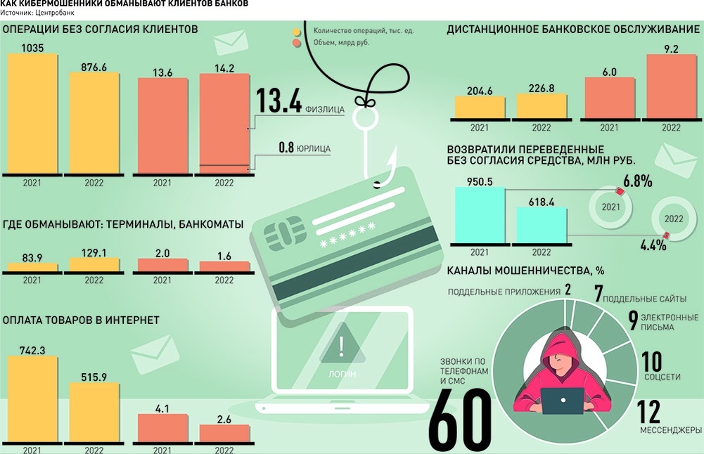 14,2 млрд рублей составил размер ущерба от действий кибермошенников в 2022 году