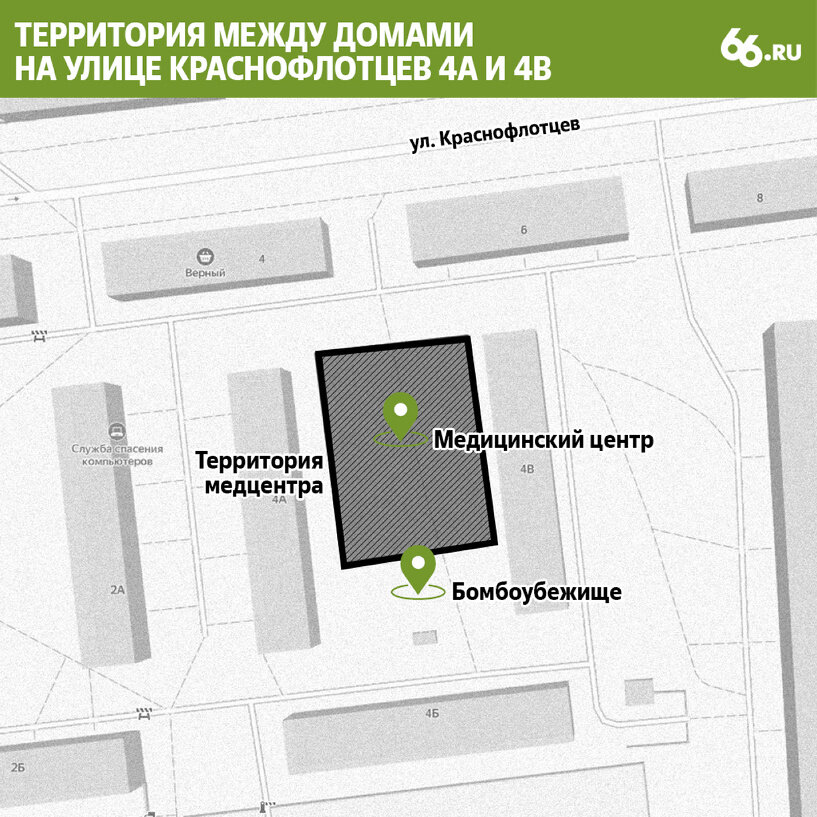 «По медцентру на Краснофлотцев мы категорически против этого проекта и в суде будем поддерживать жителей», — заявил замглавы города Рустам Галямов на брифинге. В компании «СК Интег» утверждают, что планируют построить центр по оказанию терапевтических услуг, разместить там кабинеты УЗИ, ЭКГ, электромиографии, кабинеты для проведения косметологических процедур, физиопроцедур, мануальной терапии и отвергают слухи о возведении наркологической клиники, в чем их подозревают жители квартала. Перед тем как приступить к работам, «СК Интег» необходимо установить публичный сервитут в отношении придомовой территории двух домов, чтобы обеспечить возможность проезда строительной техники. Чтобы это сделать, застройщик подал в Орджоникидзевский районный суд иск против 294 человек. В качестве третьих сторон в иске указаны администрация Екатеринбурга, министерство по управлению государственным имуществом Свердловской области, ООО «УК ЖКХ Орджоникидзевского района Екатеринбурга» (управляющая компания, о