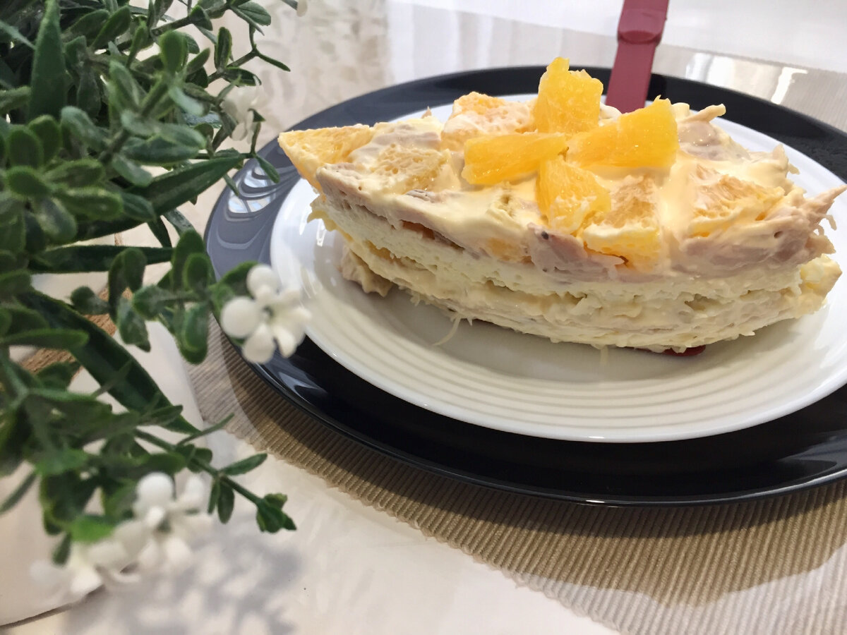 Ни у кого не встречала такого салата, а сама его готовлю давно, еще с начала нулевых. Тогда искали простые и дешевые рецепты: конкретно этот приглянулся колбасным сыром в составе (как намек, что будет по карману). Но салат оказался настолько вкусным, что и на праздниках до сих пор для него есть место. Очень вкусный, оригинальный, в нем прекрасно соседствуют нетрадиционные для одной тарелки ингредиенты. КАК ПРИГОТОВИТЬ Понадобится: колбасный сыр - 200 г, лук репчатый - 1 шт, куриные окорочка - 2 шт, яйца - 4 шт, апельсины - 2 шт, майонез Салат будет слоеный, поэтому берем посуду с высокими стенками. Апельсином салат не испортить: он освежает, но не перебивает вкус других продуктов. Получается необычно и очень вкусно - попробуйте сами.