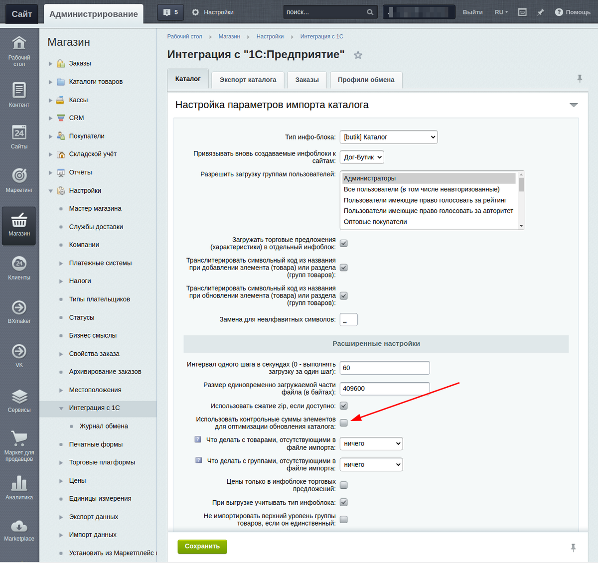 Загрузка товаров из 1С на сайт (на 1С-Битркис)