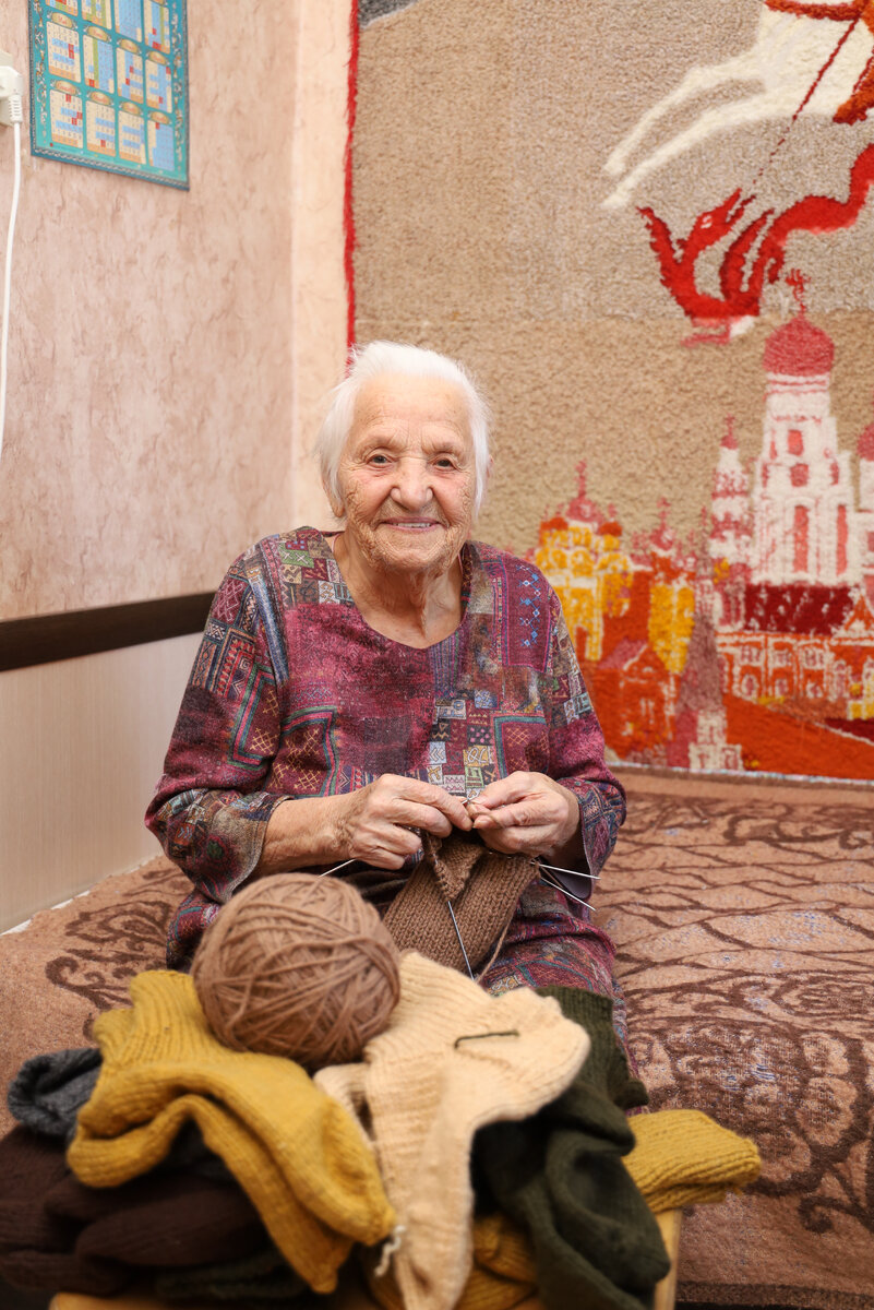 Марии Егоровне 88 лет. Возраст, как говорится, преклонный. Но несмотря на это, пожилая женщина вяжет носки военнослужащим в зону специальной военной операции. Марию Егоровну никто не принуждал, не заставлял это делать. Раз, другой, третий посмотрела по телевизору короткие, но емкие по содержанию передачи по сбору гуманитарной помощи мобилизованным солдатам. А тут еще увидела, как вяжут им носки. Ее тут же осенила мысль: а почему бы не сделать это самой? И она взялась за дело, которое ей хорошо знакомо с самого детства. В годы Великой Отечественной войны Мария, будучи восьмилетней девочкой, перенесла фашистскую оккупацию. Несмотря на малолетний возраст, запомнила все страдания, которые перенес наш народ. Вот тогда-то и сделала первые шаги в вязании. Пожилые женщины, оставшиеся в населенном пункте, помогали фронту. Они ускоренными темпами вязали носки, рукавицы, а дети им помогали. И вот теперь, когда опять нашим солдатам понадобилась помощь, добрая пожилая женщина, воспитавшая пятерых д