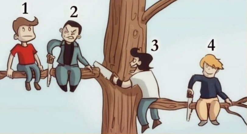 В этом задании вам нужно выбрать самого глупого, на ваш взгляд, человека. На изображении ниже изображено дерево, на котором сидят 4 человека. Попытайтесь определить, кто из них самый глупый. Самое интересно, что неправильного ответа не существует. Ниже найдёте ответы под номерами к тесту. 1. 2. 3. 4. Спасибо за ваши лайки и комментарии. Подписывайтесь на канал, чтобы не пропускать новые выпуски.