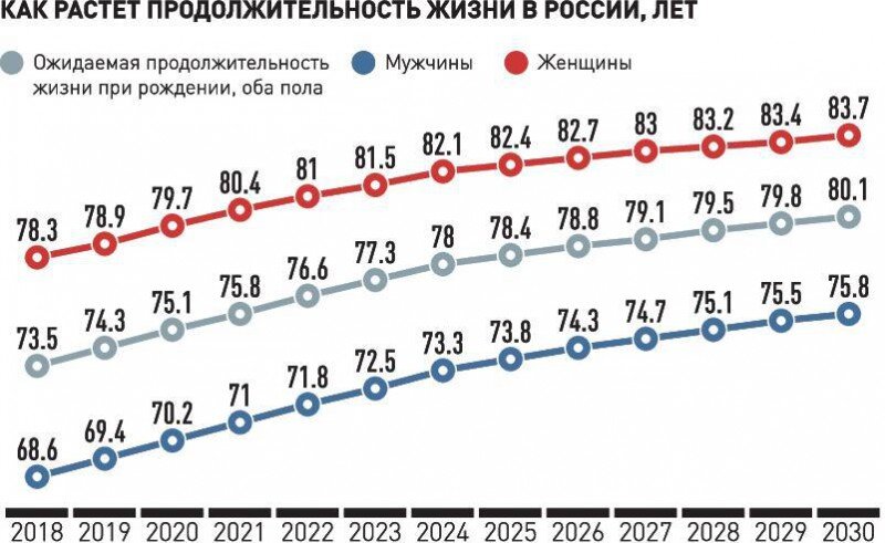 Нужно понять главное. Мы сейчас обсуждаем не продолжительность жизни. А статистический показатель "средняя продолжительность жизни. Это принципиальная разница. И даже не в медианной статистической продолжительности. Это считается так. Женщине 80 лет. В молодости она родила ребенка, который умер через 1 сутки. То есть на двоих они прожили в среднем 40 лет. Как правительству повысить показатель? Улучшать питание, безопасность жизни, лечить рак и инфаркт, чтобы женщина прожила 85 лет???? Дорого и не эффективно. Дешевле построить в Москве прекрасный роддом. Чтобы дети не умирали при рождении. Даже 500 граммовые. Тогда показатель СПЖ взлетит. Но действительно ли это хорошо? Но посмотрим с другой стороны. Та 80-летняя женщина родила ребенка, который не умер, а его реанимировали. Но остался глубоким инвалидом детства. И прожил 60 лет. Лежа всю жизнь в памперсе и питаясь через зонд. В среднем с матерью они прожили в среднем 70 лет. Вроде достижение науки. Стоит спросить а чтобы выбрала сама ж