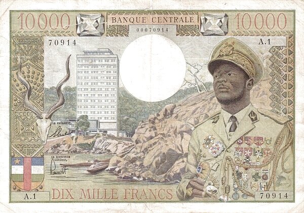 В конце 1960-х годов Банк государств Центральной Африки принял решение выпускать банкноты в общем для всех стран стиле, но при этом сохранить на купюрах национальный элемент. Поначалу были запущены в обращение купюры по 10 000 франков, оборотные стороны которых были одинаковыми, а на лицевой стороне как раз поместили портреты президентов, изображения, отражающие колорит той или иной страны, а также надпись с её названием. Первая такая купюра (правда, без указания названия страны) была посвящена Центральноафриканской Республике. На её лицевой стороне был изображён портрет президента Жана Беделя Бокассы, его любимое детище – здание отеля «Сафари» и герб республики. На обороте – вспахивающий поле трактор. На банкноте для Чада – портрет президента Нгарте Томбальбайе и стадо водяных буйволов. На билете для Габона – президент Эль Хади Омар Бонго Ондимба. Камерунскую купюру украсил портрет президента Ахмаду Ахиджу и гроздь тропических фруктов. Только на конголезской купюре поместили женский
