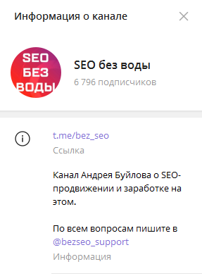 Напомню, что мой Telegram-канал называется «SEO без воды», если еще не подписаны, то стоит это сделать, там много про продвижение, результаты экспериментов и прочая полезная информация.