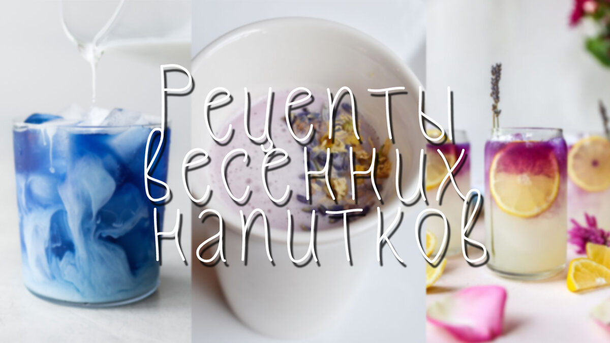 Всем большой привет, друзья! С вами снова Аня и я очень хочу поддержать настроение грядущей весны. Я частенько выкладываю для вас различные рецепты напитков по сезону. И, несмотря на ее снежный и холодный февраль, уже искренне хочется тепла и солнышка. Поэтому сегодня хочу поделится с вами пятью интересными рецептами напитков с весенней атмосферой. Я решила обойтись здесь без кофе, потому что сама сокращаю его потребления, и знаю, что многие из вас его не пьют. ТАк что приятного чтения и приготовления! Успокаивающее лавандовое молоко Все ингредиенты я указала на фото выше! Для начала подогрейте молоко до состояния чуть горячего. На дно чашки положите сушеные травы, мед и ваниль. Залейте теплым молоком и дайте постоять 3-5 минут. Перед употреблением можно процедить и обязательно перемешать.Если вы не употребляете обычное молоко, то к этому рецепту отлично подойдет соевое. Ну и если вы хотите получить более эффектный визуально напиток, то добавьте совсем немного пищевого красителя. А е