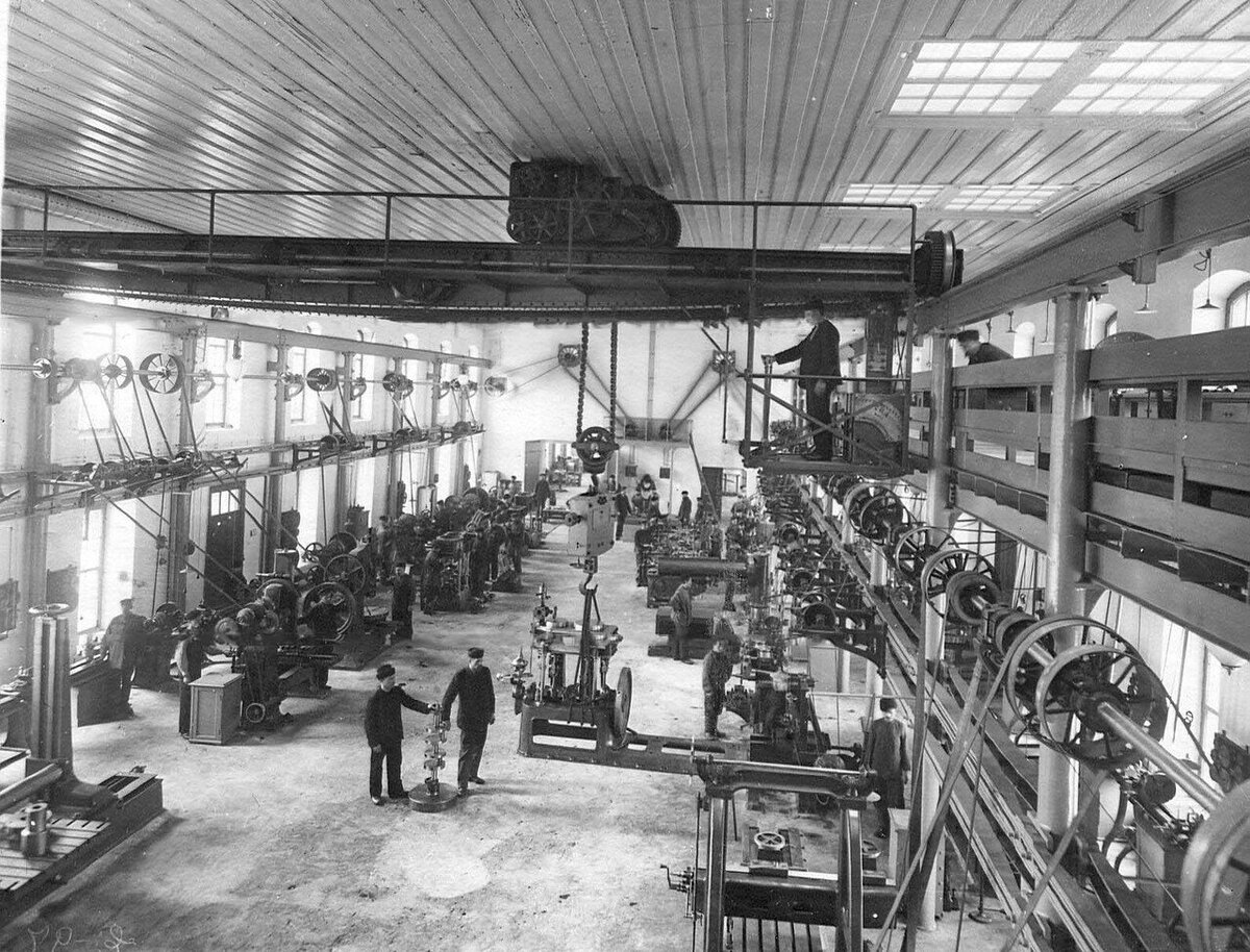 Рабочие за изготовлением радиоаппаратуры в большом цехе завода В 1910 г. мастерская была переведена в Петербург и в 1911 г. стала именоваться радиотелеграфным депо морского ведомства. К концу 1911 г. на базе имевшегося в составе депо "поверочного отделения" была организована лаборатория, ставшая первой научно-исследовательской промышленной организацией в России, не зависящей от иностранного капитала.
