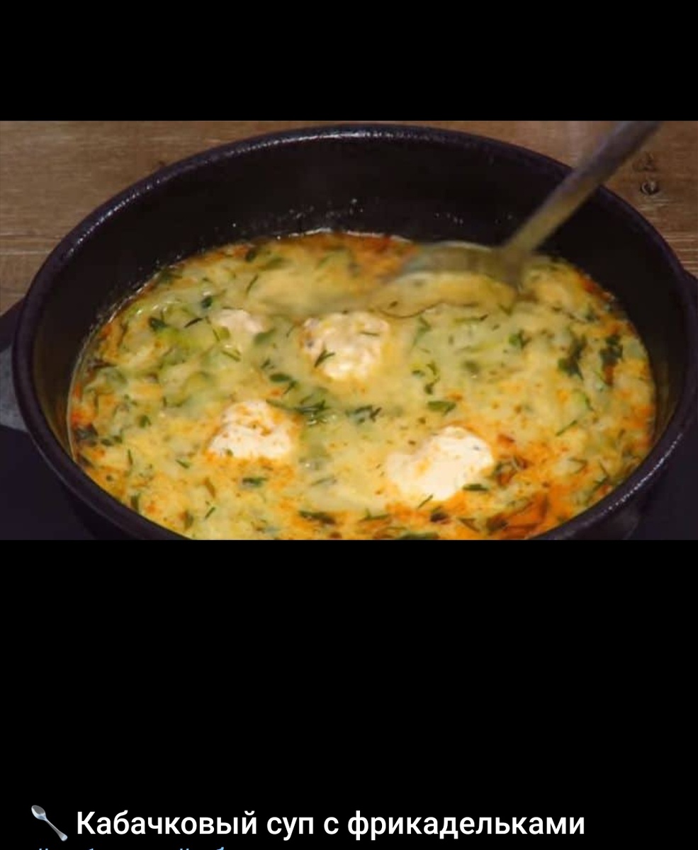 🥄 Кабачковый суп с фрикадельками #от1года #обед Ингредиенты: • фарш – 350 г. • цукини – 1 кг. • лук – 200 г. • сметана – 250 г. • масло сливочное – 25 г. • масло растительное – 20 мл. • мука – 20 г. • специи, соль – по вкусу Приготовление: 1. Перемешайте и слегка отбейте фарш. Сформируйте маленькие фрикадельки. 2. Кабачки натрите на крупной тёрке. 3. Лук нарежьте мелко. 4. Разогрейте сливочное и растительное масла в кастрюле. Выложите туда нарезанный лук. Обжарьте 5-7 минут на малом огне, помешивая. 5. Влейте 1,3 л. холодной воды. В 50 мл воды разведите муку, чтобы не было комочков. Влейте в кастрюлю. Перемешайте. Доведите до кипения. выложите фрикадельки. Перемешайте и доведите до кипения. 6. Варите 2-3 минуты на умеренном огне. Затем добавьте натёртые кабачки. Перемешайте и доведите до кипения. Готовьте 2-3 минуты на умеренном огне, помешивая. 7. Добавьте сметану. Перемешайте и доведите до кипения.