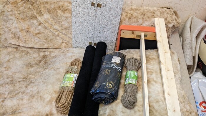 Обещал я сделать когтеточку и вот наконец свершилось) Что нам понадобится: 1. Кусок столешницы (осталась от тумбочки из известного строительного магазина) 2. Две доски 3. Две картонные трубы 4. Две веревки 5. Сидушка 6. Самоклеющейся ковер 7. Уголки, саморезы. Вот что в итоге получилось. Заказчик вроде доволен... Друг заказчика решил внести коррективы в проект хD. P.S. Это только хобби, нравится иногда что-нибудь сделать своими руками. Спасибо за просмотр. Комментарии