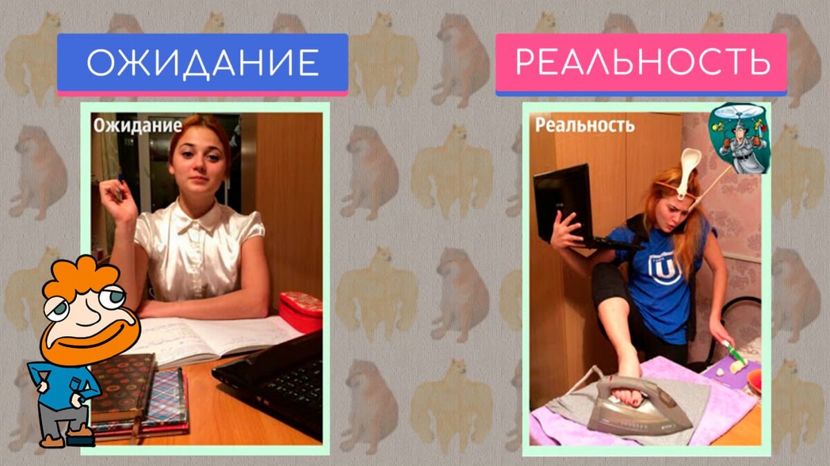 Привет, дорогой друг! Ты ведь знаешь, что в нашей жизни часто бывают ситуации несовпадения ожиданий и реальности. Если относиться ко всему без юмора, то можно улететь на ПМЖ в город Грусть. Давай так делать не будем, а посмотрим на разочарования под веселым углом? Поехали! Удаленная работа всегда представляется неверно. Проснуться пораньше, надеть костюмчик делово и сидеть на созвонах. В реальности по мимо рабочих вопросов, придется решать кучу домашних дел. Достопримечательности никогда не стоят в одиночестве. Хочется в одиночестве созерцать шедевр Леонардо Да Винчи? Такого не будет. Вокруг Джоконды всегда стоит очередь из туристов. Рецепты печенья в интернете красивы только на фото. В реальности вас ожидает разочарование: нужно шарить за кулинарию, теста, температуру выпекания и декор. Даже специальные формочки не помогут. Смотрите, что может получиться. Не верь фотографиям в интернет-магазинах. Красивое платье по скидке — это обман, чтобы набрать классы. На фото будет привлекательна