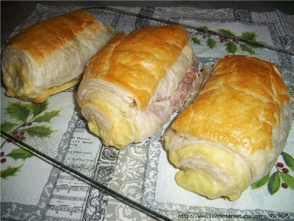 Для 6 штук: 1 р. слоёного теста (готовое)