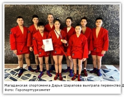 Магаданская самбистка Дарья Шарапова одержала победу в первенстве Дальневосточного федерального округа по самбо, которое проходило в Хабаровске 1-2 февраля. В соревнованиях приняло участие 265 самбистов из регионов ДВФО. Магаданскую область представляли девять спортсменов, сообщает ИА MagadanMedia со ссылкой на Горспорттуркомитет.