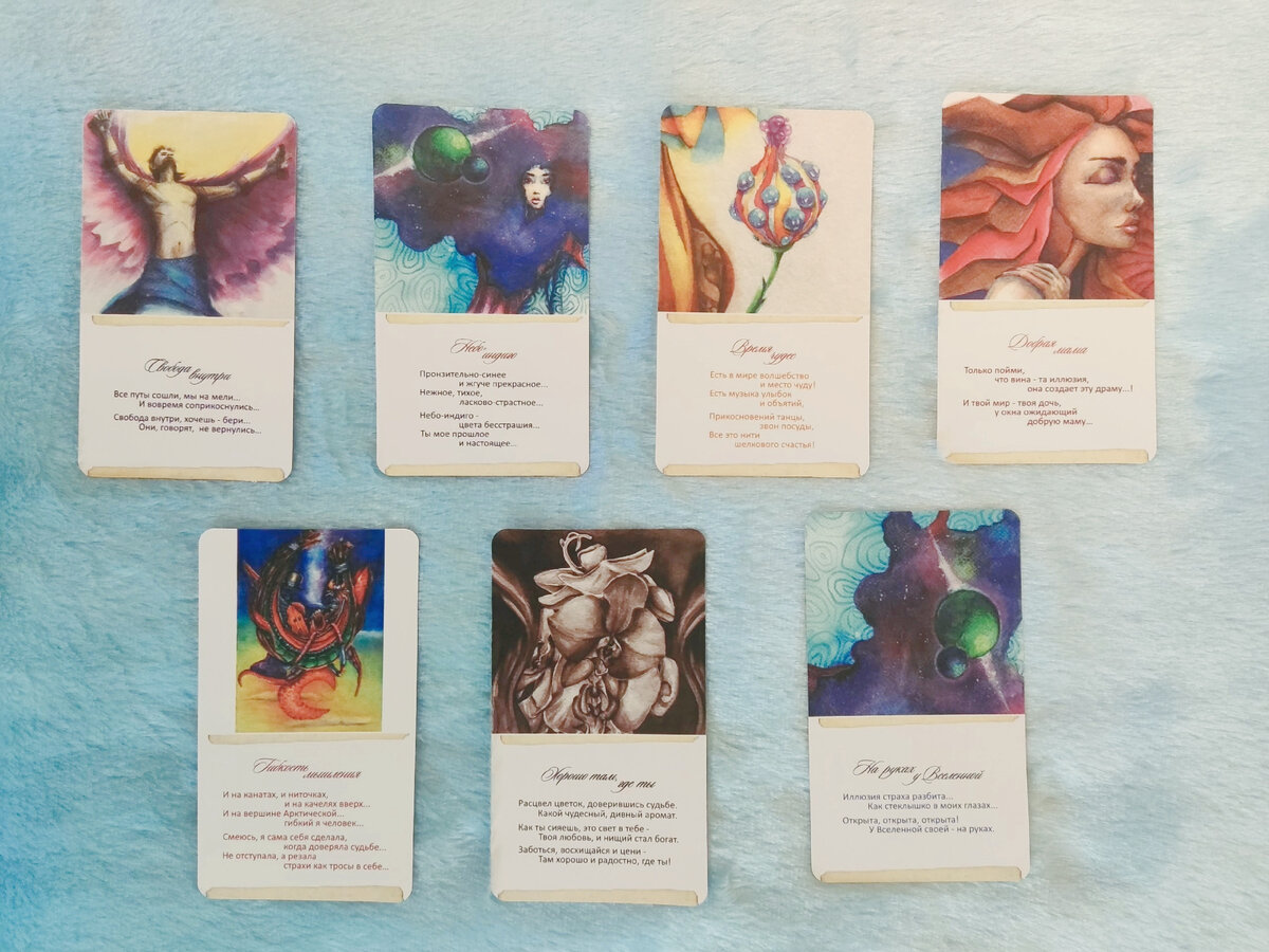 Публикую ответ мак карт. Вам необходимо прочитать стихотворение, посмотреть на иллюстрацию и написать 10 ассоциаций. 5 ассоциаций к стихотворению и 5 к картинке. Это могут быть ассоциации связанные с чувствами, а могут быть первые приходящие мысли. Могут быть как положительные, так и отрицательные. Писать именно здесь не обязательно, так как это может быть очень личное. Затем возвращаетесь к данной карте в течении того дня на который Вы ее загадали и читаете аффирмацию. Периодичность-каждые два часа. Желательно чтобы был рядышком лист бумаги и ручка для того чтобы записывать те первые мысли и ассоциации которые приходят. Я думаю, телефон у Вас всегда под рукой и посмотреть на свою карту не будет сложно. В конце дня подведите итог. Посмотрите на то, что Вы написали. Проследите свои эмоции. Возможно , у кого то будет инсайт. Если Ваши ассоциации были неожиданные для Вас или Вы не знаете что дальше с этим делать или хотите заглянуть в себя более глубоко и поговорить со своим внутре