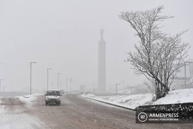 В некоторых районах Армении идет снег, есть труднопроходимые дороги