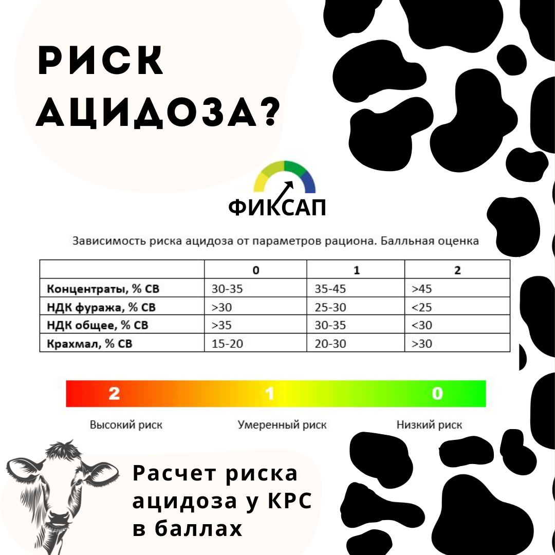 Зная уровень риска ацидоза, мы можем заранее предупредить его развитие в стаде за счет включения в рацион буферов. Для буфера «ФИКСАП» разработана научно-обоснованная методика расчета эффективных дозировок, исходя из оценки риска ацидоза, которая надежно защитит рубец и положительно повлияет на все зоотехнические показатели.