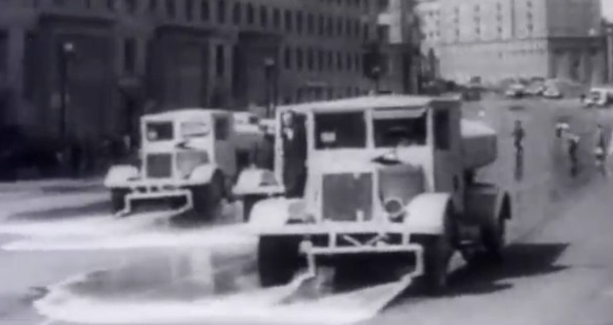Я довольно часто пишу про отечественные фильмы. И накопилось уже много интересной информации. К примеру я решил проверить как часто, и главное какие поливально-подметальные автомобили "снимались" в картинах. К большому сожалению наиболее массовые ЗИС-5 и ГАЗ-АА в основном были статистами в лентах про войну, или были показаны в своем первозданном виде, а именно в качестве грузовых машин. А вот ярославским автомобилям повело больше. К примеру с середины 30-х годов в Москве и Ленинграде стали работать грузовики ЯГ-4. Оно и понятно, это все же были пятитонники и они могли везти значительный запас воды в цистерне. Причем интересный факт, сопла разбрызгивателей стояли как в переднем части автомобиля, под бампером, так и в базе машины. Они носили индекс ПМ-4. Когда же в 1936 году на Ярославском государственном заводе наладили производство усовершенствованных машин с индексом ЯГ-6, то коммунальные службы стали использовать их в качестве поливалок и машин для уборки снега. Правда оборудование