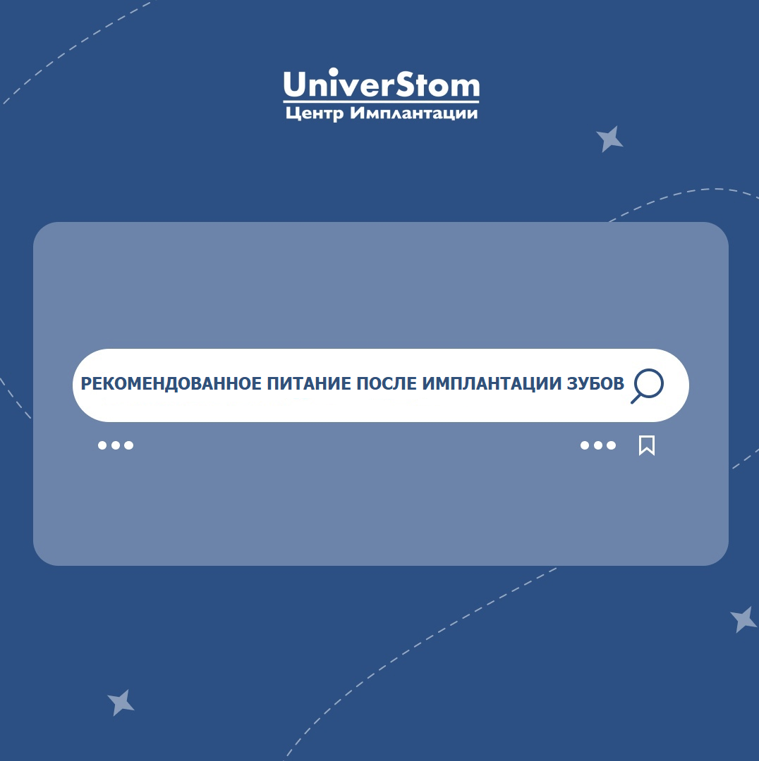 В Центре имплантации UniverStom при установке импланта используется щадящий безлоскутный метод: делается небольшой прокол, без разрезов и швов. В дальнейшем, с целью предупреждения отторжения и сохранения целостности мягких и твердых тканей, пациенту необходимо соблюдать предписания. Врачи внимательно следят за процессом остеоинтеграции и рекомендуют изменить привычный образ жизни и правила питания, чтобы снизить до минимума нагрузку на импланты. В первые 3 часа после установки импланта нужно отказаться от пищи, затем ограничиться йогуртом, теплым супом. Период реабилитации составляет 2-3 недели, поэтому соблюдаем указанные правила, затем постепенно вводим любимые продукты: предпочтение отдаем блюдам комнатной температуры; -жуем на той стороне зубного ряда, где не проводились манипуляции, пережевываем еду аккуратно; отказываемся от алкоголя, кофе, черного чая и курения. не употребляем кусковое мясо, орехи, семечки, сухарики, соленую, острую, кислую еду; забываем о сладостях (конфеты, м