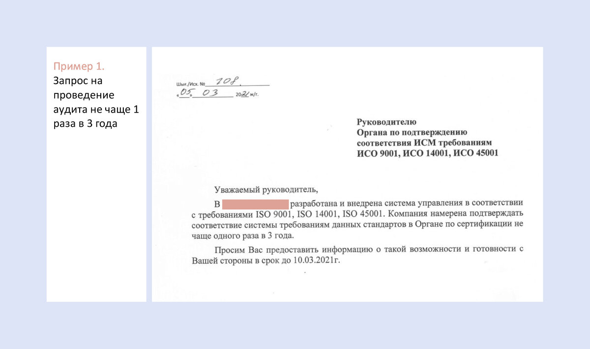 Аудиты, как и любая другая форма оценки соответствия, проводятся с учетом беспристрастности и объективности, иначе теряется вся логика при проведении сертификации: демонстрировать реальные, а не приукрашенные результаты. В практике ТМС РУС встречались запросы, в которых неоднозначно были сформулированы требования к процессу аудита и аудиторам, один из примеров показываем на следующей картинке: