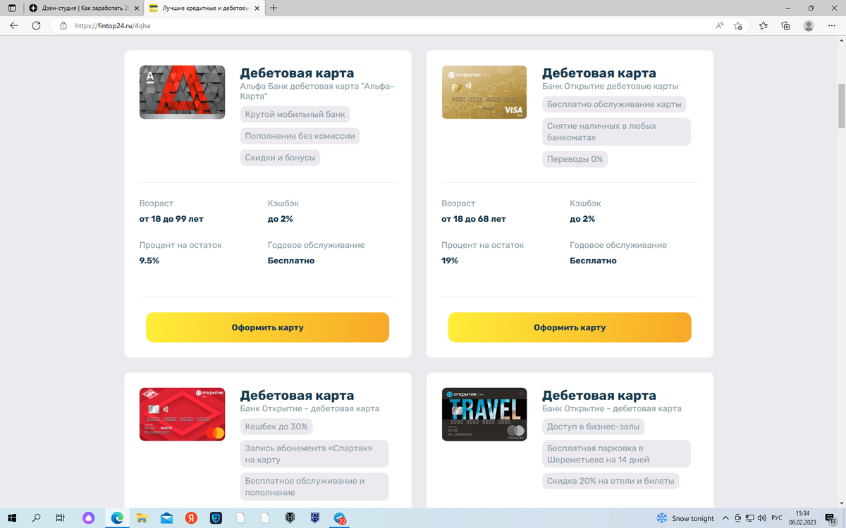 Доброго времени суток уважаемые читатели данной статьи Не так давно мы создали сайт На данном сайте подключена партнерская программа с популярными банками выдающими бесплатные дебетовые карты Все карты абсолютно бесплатные и с бесплатным обслуживанием Также на некоторых картах действует очень выгодный кэшбек на любые покупки до 30% Минимальный возраст для оформления карты: от 14 лет Как же заработать оформив любую из этих карт? Да все очень просто, по подключенной партнерской программе мы получаем до 4000 рублей за каждую выданную карту, Следовательно половина идёт вам Всё что вам нужно это написать нам в телеграмм https://t.me/SharkBoba Далее мы вам дадим ссылку на данный сайт вы выберете любую понравившуюся вам карту и бесплатно оформите, далее заберете в банке или вам её доставит курьер бесплатно (в зависимости от вашего города),И получите вознаграждение переводом на ту же карту которую оформили! В чем ваша гаран