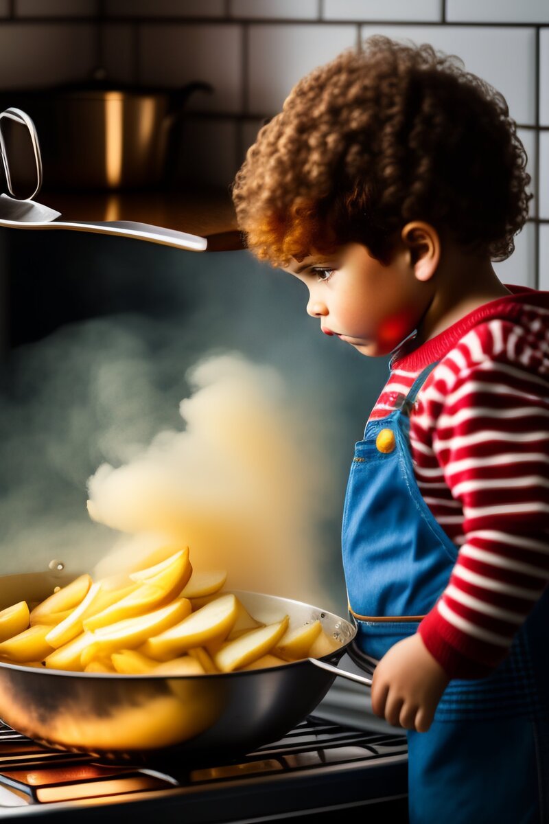 Жил-был в маленьком селе мальчик по имени Сережа. Он был очарован кулинарией и всегда экспериментировал с различными ингредиентами и техниками на кухне. Однажды он наткнулся на рецепт идеальной жареной картошки. Сережа собрал все необходимые ингредиенты: картошку, масло, соль, перец и немного трав для аромата. Он вымыл и нарезал картофель, затем нагрел масло в большой кастрюле. Он осторожно добавил картофель в сковороду, время от времени помешивая, пока он не стал хрустящим и золотисто-коричневым. Когда картофель был готов, он приправил его солью и перцем, а также посыпал травами для дополнительного вкуса. Он осторожно вынул картошку из кастрюли и положил ее на большое блюдо. Семья Сережи была поражена восхитительным ароматом жареной картошки, и всем не терпелось отведать ее. Когда они сели обедать, то были поражены вкусом картошки. Сережу похвалили за готовку и попросили поделиться рецептом. С этого дня рецепт Сережи жареной картошки стал известен в деревне, и его часто просили по