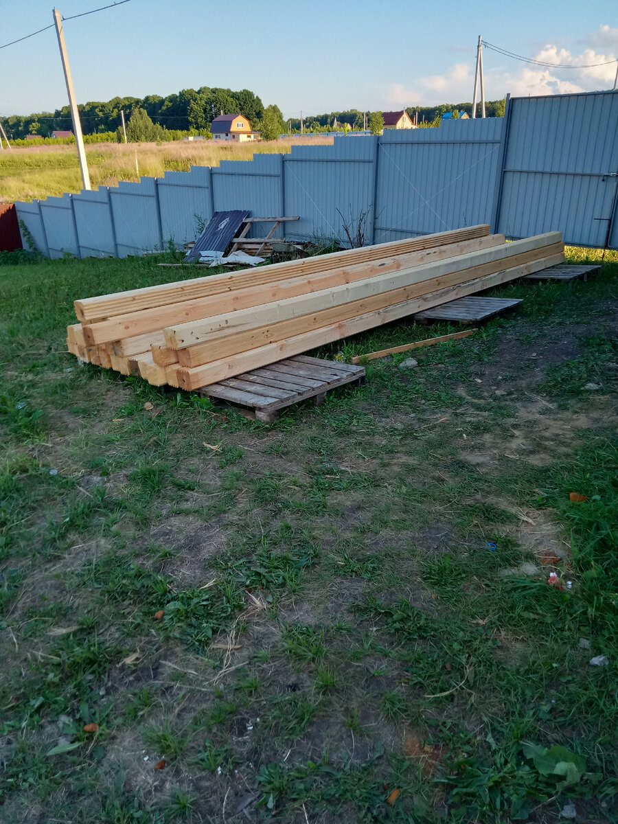 Добрый день, дорогие друзья! Чтобы каждый день с двумя маленькими детьми не ходить из квартиры на участок (ведь автомобиля у нас нет), нам хотелось построить небольшое жилище, чтобы там можно было оставаться с ночёвкой. Тем более, к тому моменту на обработанной нами земле мы уже сажали растения из стандартного набора дачника. И всё это требовало ежедневного полива. Дом мы не смогли бы осилить, особенно когда строительный рынок трясло ежедневным повышением цен. Поэтому решили построить баню с комнатой в 12 квадратным метра и большой террасой. И ипотека (которая "на полвека - яркой жизни не помеха") нам как раз подходила по цене строительства бани "под ключ". С большой надеждой мы ждали окончания строительства. График немного сдвинулся, поскольку дорогу размывало дождями. Но к отпуску, в июле, все дела были завершены. Оставалось покрыть стены из бруса антисептиком, чтобы дерево не портилось под воздействием атмосферных осадков и не темнело под солнцем. Это мы и выполнили в первую очеред