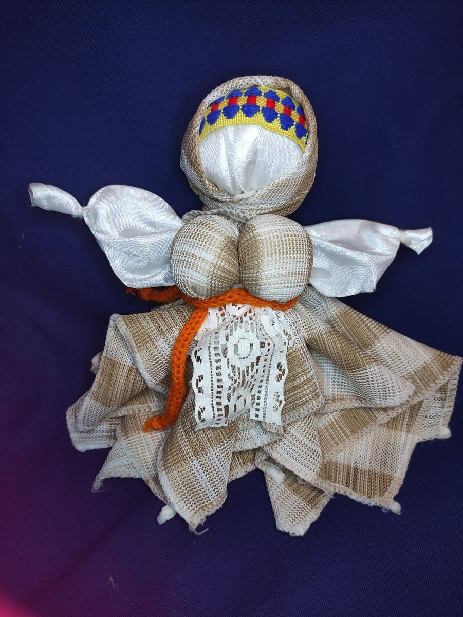 Всем по привету! Сегодня мастерим вепсскую куклу! Рассказ о ней можно почитать тут: Не судите меня строго, я тоже делала это первый раз. Это не мастер класс, это мотивационная статья. Я хочу сподвигнуть вас на творчество, и если у меня получилось, у вас тоже обязательно получится!!!! Сначала делаем голову. Для этого берем квадратный кусок ткани, ткань должна быть натуральная, у меня не было ни рогожки не льна, но я нашла кусочек вискозы. Вы берите, что есть у вас. Как видите голова делается просто. Дальше надо сделать руки и обозначить тело. Вепская кукла отличается большой грудью. Значит следующая задача по типу головы сделать две груди. Прикручиваем грудь к телу. Закладываем еще платочки для юбки на задней части куклы. Осталось украсить куклу фартучком и кушачком. И голову платочком Ну, а что у нас получилось вы уже видели на первой фотографии. Славянки никогда не пренебрегали активацией оберега, ведь они знали, что иначе в нем не будет силы. Женщины читали специальные заговоры прям