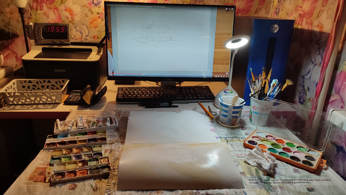 Учитель замечательная девушка Eugenia Lavrova. Мастер класс Бесплатный называется Городской зимний пейзаж акварелью. Я немного его изменила. Город заменила лесом. И не использовала в работе карандаши, как автор. За один вечер нарисовала. Смачиваем лист водой все кроме Причала. Теплым желтым цветом выделим солнечные стороны. Далее небо покрываем голубой краской - справа темнее. Добавляем к голубому фиолетовые оттенки внизу рисунка - там сугробы. Аля пришла помогать. По ссылке видео Вводим остальные цвета. Прорисовываем саму пристань. На заднем фоне у автора город, у меня просто лес. У автора получилось Нежно и красиво. У меня не так. Что не расстраивает кончено меня. Я провела прекрасно время с акварелью. Спасибо учителю! Что меня затронуло в этой теме? Почему я выбрала именно этот рисунок? Ответ из детства. На Волге недалеко от Работок в Нижегородской области моя деревня. Летом я там проводила часть каникул. Именно на такой пристани мы ждали с мамой и бабушкой Ракеты и Метеоры. При