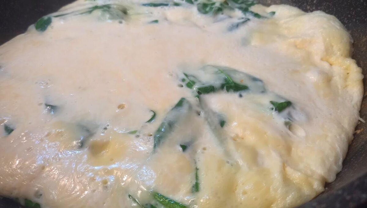 ОМЛЕТ СО ШПИНАТОМ И СЫРОМ Я часто делаю этот омлет на завтрак, шпинат покупаю свежий или замороженный. (предварительно размораживаю 3-4 кубика) Сыром я посыпаю омлет именно в тот момент, когда он еще жидкий и схватился только cнизу, нужно, чтобы сыр утонул, тогда он получается вкуснее и нежнее. А если просто посыпать сверху, когда омлет почти готов, то получится сырная корочка. Вы можете сделать в любом варианте. Взбиваю 3 яйца и молоко, грамм 150-200, я все делаю на глаз. Сыр я тру на мелкой терке ( подходит твердый сыр, похожий на ГАУДУ) Посолить. Когда схватится низ, вы посыпаете его сыром, чтобы сыр утонул.