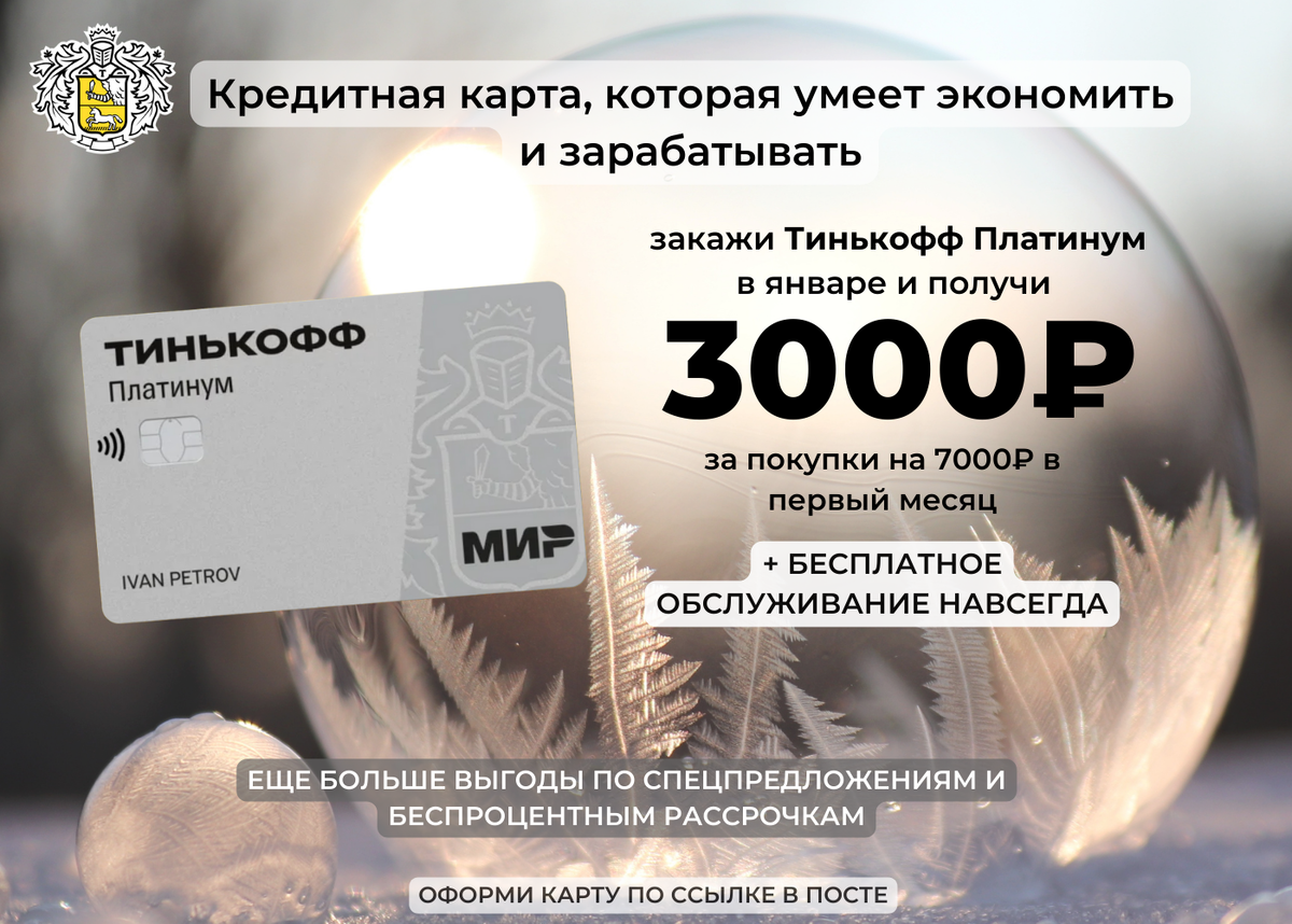 Менеджеры Банка Тинькофф не оставляют шансов конкурентам, они нашли золотой ключик от неиссякаемых богатств. Если это не так, тогда не понятно на чем они собрались зарабатывать. Но пока что они не опомнились и не поняли, что оставляют банк без прибыли предлагаю воспользоваться удачным моментом и оформить их продукт на выгодных условиях. Универсальную кредитную карту “Platinum” и получить за это 3000 реальных рублей. Как получить бонус 1) Оформить карту по ссылке из этой статьи. 2) После получения совершить покупки на сумму от 7000р в течение 30 дней. Всё! Бонус в виде 3000 реальных рублей поступит автоматически 💳 Плюс вечное бесплатное обслуживание на полном тарифе! Но имейте ввиду, что акция доступна только новым держателям карты Платинум, которые является гражданами РФ старше 18 лет. Оформить карту Другие преимущества карты Кэшбэк 1% на всё. Для кредиток в принципе редкость наличие кэшбэка, а тут ещё и на все покупки есть. И кстати с тех 7000р которые нужно потратить для получения