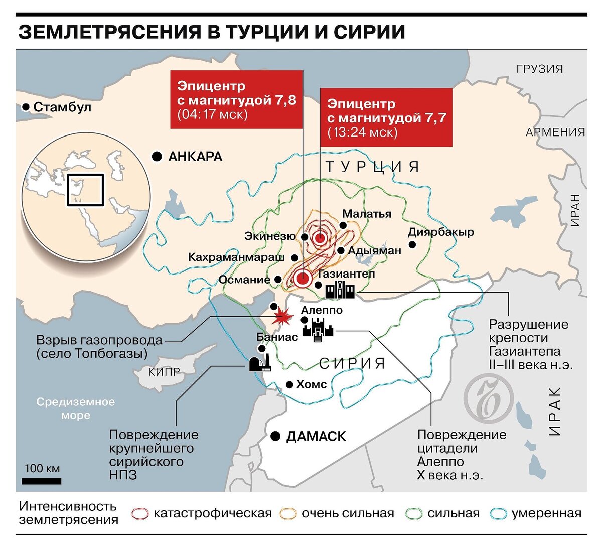Сегодня произошло сразу несколько землетрясений на разных континентах. Самое мощно произошло в Турции, магнитудой до 8 баллов, на данный момент известно о 1500 погибших только в Турции. Досталось и Сирии, там счёт погибших тоже идёт на сотни. После первого землетрясения в Турции спустя несколько часов произошло второе, магнитудой 7.7 балла. Второй очаг землетрясений образовался сегодня после обеда (по мск) на юге Казахстана. Здесь отделались испугом, так как толчки достигали мощности всего 2-3 балла. Трясло в Шымкенте, Таразе, а также Туркменистане. Третий очаг был на другом континенте - в США, там произошло самое мощное за последние 40 лет землетрясение - почти 4 балла. Трясло на Западе штата Нью-Йорк. Сильнее всего досталось Буффало. Но так как сила землетрясения не такая мощная - то удалось избежать разрушений и жертв. Отдельные ресурсы публикуют карту сегодняшних толчков и землетрясений. Очагов очень много: По ней видно, что трясёт буквально всю планету. Сильнее всех досталось Ту