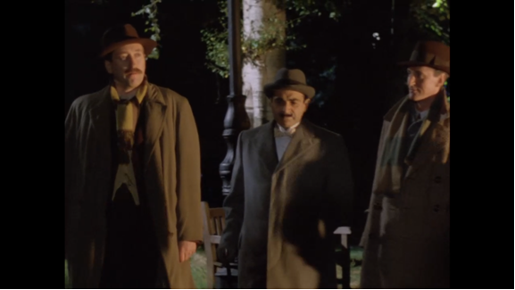 Во 2 серии 1 сезона, в самом начале Пуаро спрашивает у Гастингса: «Друг мой, скажите, сжечь английский парламент - это грех или подвиг?»