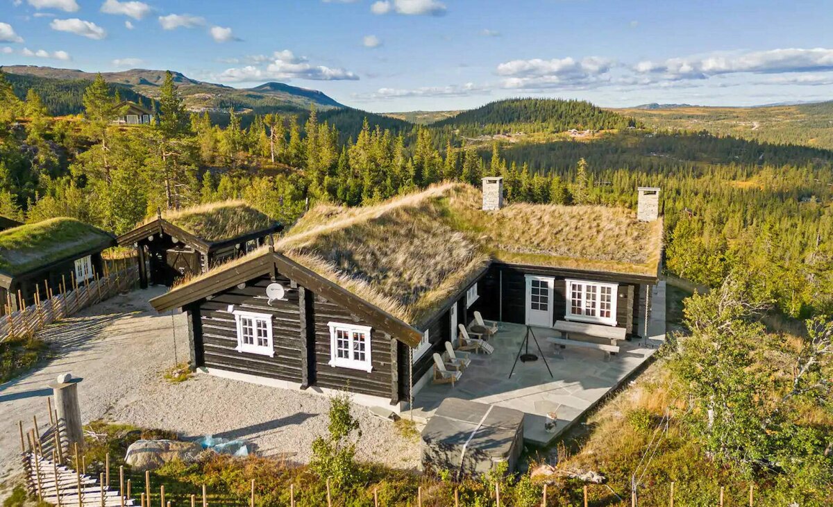 Многие жители Норвегии, имеющие частные дома, предпочитают прочные и долговечные срубы. Кирпичные коттеджи обходятся дорого, а каркасные постройки не так популярны, поскольку утеплитель в конструкциях стен быстро приходит в негодность из-за влажного климата. Этот частный дом стоит в норвежской глубинке, вдалеке от других построек, на небольшой возвышенности. Дом выглядит вполне современно, а оригинальности ему добавляет зеленая кровля — она не только радует глаз, но и является отличным тепло- и звукоизолятором. В плане коттедж имеет Г-образную форму и с трех сторон окружен выложенной серым камнем террасой (ее площадь −100 м²). На самой широкой площадке оборудованы зоны отдыха, рядом установлена большая ванна-джакузи. Цепи-водостоки, спускающиеся с крыши, для дождевой воды и таящего снега играют роль направляющих. Цепи практичнее обычного водостока: они не засорятся высохшей на крыше травой, не сломаются от резкого порыва ветра, а если и обрастут ледяной коркой в морозы, ск