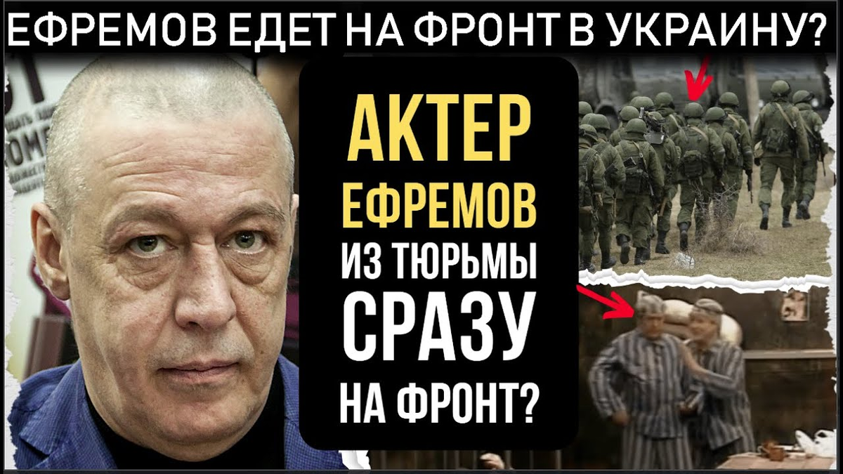 ''Надеюсь Бог простит мне ту аварию если я отправлюсь туда'' Неожиданное заявление актера Михаила Ефремова ошеломило россиян Осужденный Ефремов Михаил Олегович: в последнее время, думаю, не стоит бояться войны. 8 танков, 5 гранат, погребальная бумага. Ефремов просил о возможности выйти на фронт. Задержанный Ефремов Михаил Олегович: я отбываю наказание в исправительной колонии номер четыре, городе Алексеевке. Неожиданное заявление актера Михаила Ефремова ввергло россиян в шоковое состояние. Актер Михаил Ефремов не только поддержал так называемую спецоперацию, но и заявил, что хочет принять в ней участие, чтобы выбраться из тюрьмы. В последнее время я думаю, что войны бояться не стоит, ведь это эпидемия всего. конечно, я могу только сочувствовать людям, живущим на Донбассе, в Сирии. Раньше. Казалось бы, поэт бескомпромиссный гражданин, не боящийся резать правду, матка по правде оказалась трусом, слабаком и, главное, предателем и лжецом. Люди, голые и голые, глупые во многом, были вчера