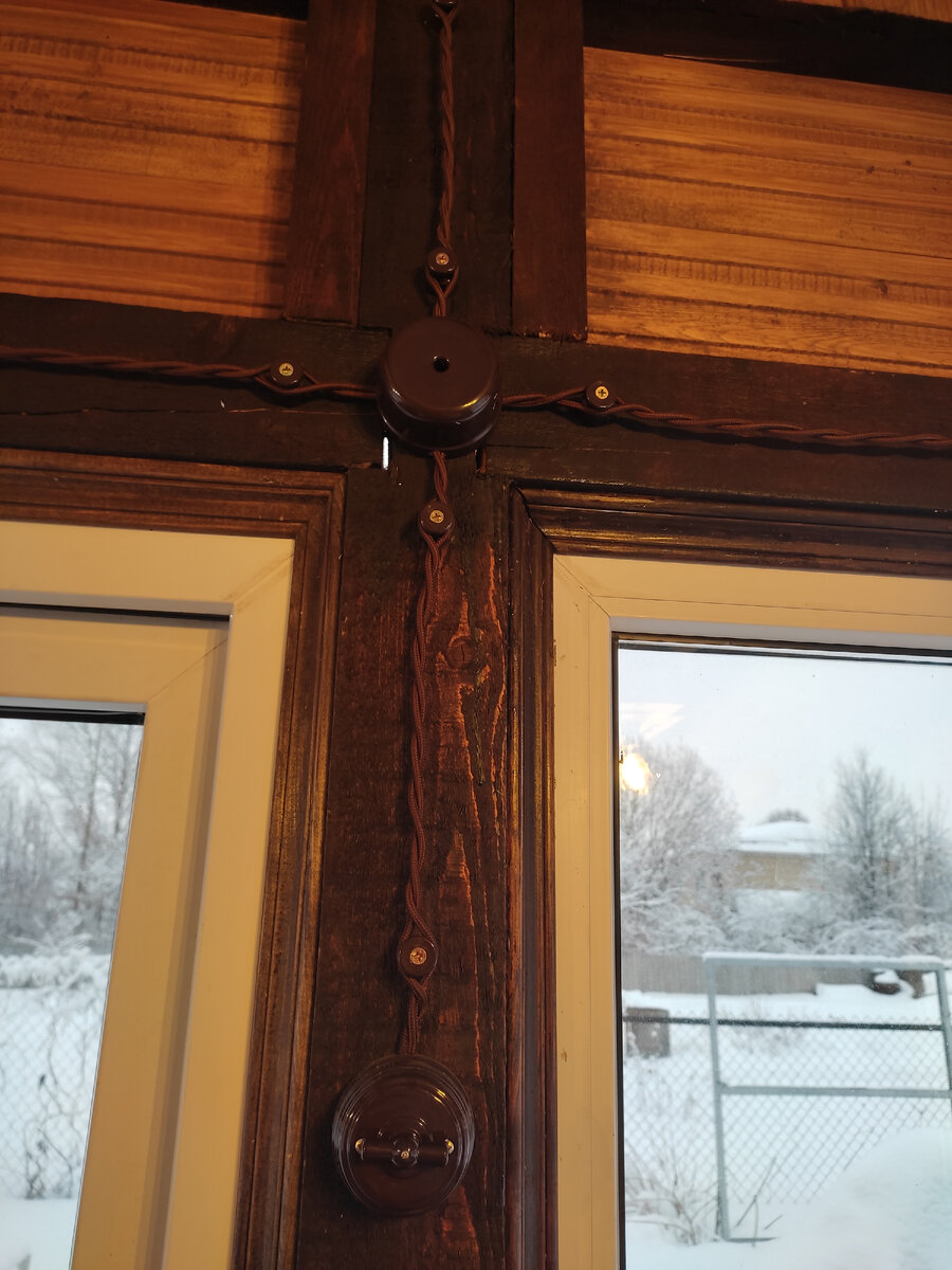Фарфоровые были дорогие, выбрали более дешёвый вариант "Мезонинъ"- это российский производитель ретро электрики.