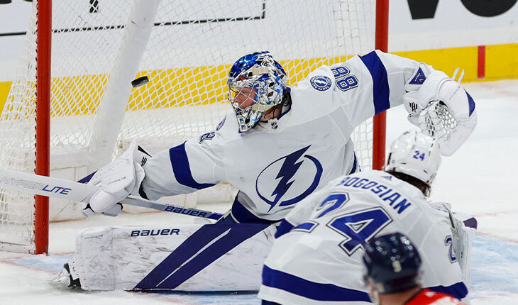 Хотя ничего беды не предвещало. У Андрея Василевского было много работы в первом периоде – «Пантерс» бросили по его воротам 17 раз, и лишь с одним броском он не справился. На самом старте второго команды обменялись голами – у «молний» забил Никита Кучеров, и сделал он это, казалось бы, легко и просто: просто шмальнул от синей, а шайба взяла и зашла над щитком Сергея Бобровского.