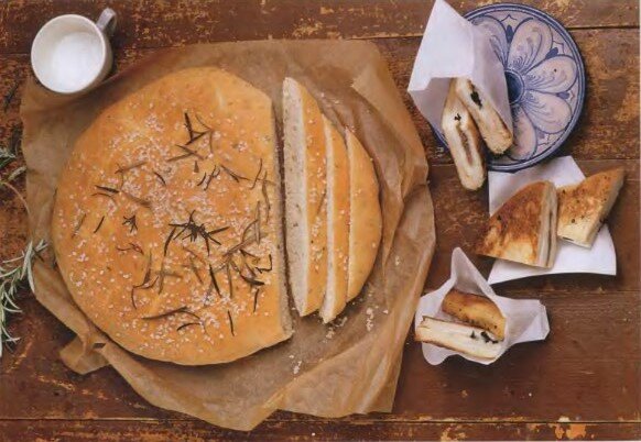 Вот простой рецепт итальянского хлеба фокачча Ингредиенты: 500 г (3 3/4 стакана) универсальной муки 10 г (2 чайные ложки) соли 10 г (2 чайные ложки) быстрорастворимых дрожжей 325 мл (1 1/3 стакана) теплой воды 3 столовые ложки оливкового масла, плюс дополнительно для сбрызгивания Крупная морская соль, для посыпки В большой миске смешайте муку, соль и дрожжи. Добавьте теплую воду и 3 столовые ложки оливкового масла и перемешайте, пока тесто не соберется в ком. Выложите тесто на слегка посыпанную мукой поверхность и месите около 10 минут или пока тесто не станет гладким и эластичным. Поместите тесто в слегка смазанную маслом миску, накройте полиэтиленовой пленкой и дайте ему подняться в теплом месте примерно на 1 час или пока оно не увеличится вдвое. Разогрейте духовку до 220°C (425°F). Выложите тесто на слегка посыпанную мукой поверхность и аккуратно вдавите его в большую круглую или прямоугольную форму для выпечки. Кончиками пальцев сделайте ямочки на поверхности теста, затем