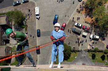 Дорис Лонг из Великобритании является самой возрастной экстремалкой: в свои 99 лет! Миссис Лонг увлекается промышленным альпинизмом. И ладно бы женщина занималась этим всю жизнь.. увлечение она открыла для себя в 85 лет, и за эти годы совершила множество благотворительных спусков, ставила рекорды Гиннесса (например, спустившись с самого высокого здания Портсмута – 70 метров). Дорис Лонг в восторге от своего увлечения!