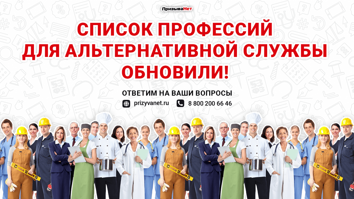 Вчера, 6 февраля, Минтруд России увеличил количество профессий для альтернативной гражданской службы. Теперь актуальный список включает 150 профессий для 785 предприятий. Этот список формируется на основании предложений федеральных и региональных органов исполнительной власти. Эксперты медицинско-правовой компании «ПризываНет» ознакомились со списком.