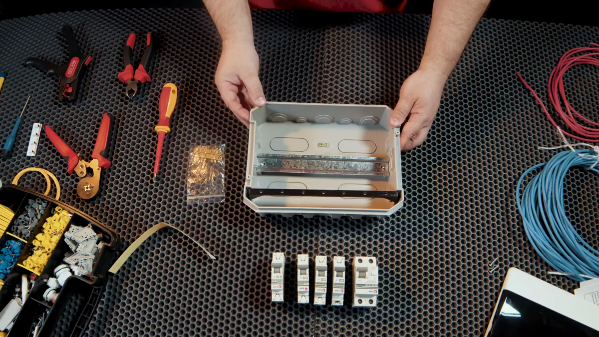 Собрать электрощит можно самому: просто следуйте нашей инструкции. Но даже если вы на это не решитесь, не закрывать эту статью: в ней вы узнаете, что именно нужно купить и сколько это стоит. Переходите по ссылкам и увидите актуальную стоимость оборудования. Так вы сможете заранее спланировать бюджет и проконтролировать работу электрика. Что купить для электрощита в 1-комнатную квартиру Чтобы вы не тратили время на подбор защитных аппаратов и ничего не забыли, мы составили чек-лист, по которому удобно сразу приобрести всё необходимое: В списке вы видите приборы серии PROxima: Почему мы взяли УЗО и 3 автоматических выключателя, а не, к примеру, 2? Потому что соблюдаем ГОСТ: минимальное количество аппаратов в квартирном щитке — 4 шт. Больше можно, меньше нельзя. Как собрать электрощит: пошаговая инструкция Шаг 1: Собираем навесной шкаф Обратите внимание, в предложенной нами модели есть встроенный поплавковый уровень, который поможет ровно повесить щит на стену или установить в нише. Шины