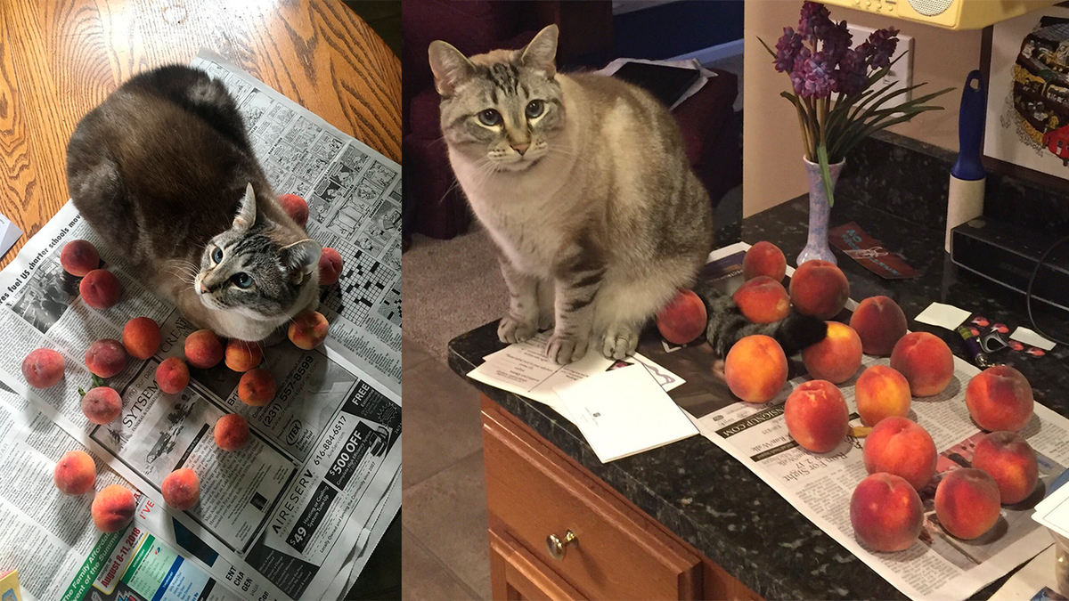 В Америке живет большой кот по имени Оззи, а его главная любовь — персики. Об этом рассказала его хозяйка Лидия Коутрей в соцсетях. «Кот моих родителей необъяснимо любит персики, и это очень мило. Родители постоянно отправляют фотографии кошки, которая расслабляется рядом с персиками. Для меня сообщения с этими фотографиями самые важные их всех, что я получаю на свой телефон», — говорит Лидия. Оззи никогда не ел персики, отмечает Лидия. Он просто их охраняет, ему не важно, какого фрукты размера, как и на чем они лежат. Самое главное для него — быть рядом c ними. Пользователи попытались догадаться, почему Оззи себя ведет подобным образом: кто-то предположить, что коту нравится запах, а кто-то утверждает, что дело в приятной для него шершавости персиков. Также один из пользователей предположил, что котику одиноко, но Лидия сразу успокоила: в их доме два кота, так что дело не в одиночестве. Кот с персиками собрал сотни тысяч лайков и репостов, но почему он так любит персики, все равн