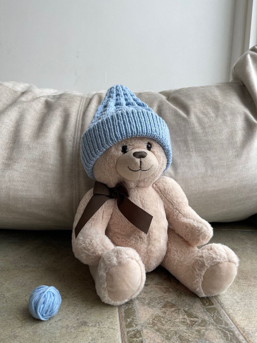 Что-то я все про темы околовязальные, отвлеченные? А про вязание кто писать будет? Саботирую это дело... Наверное, потому, что часто стала детское вязать, а на модели сфотографировать готовое не представляется возможным - прыгает, убегает, фотографироваться не хочет. У моделей дела поинтереснее есть, знаете ли. Поэтому для демонстрации готовой шапки я прибегла к помощи медведя. Он мне оказал великолепную медвежую услугу - спокойно посидел в шапке. Все фото до стирки. Конечно, на модели шапка не таким колпачком выглядит. Анатомия и размеры медведя немного искажают ситуацию. Поэтому на руках вот показываю: Так узор выразительнее смотрится. А вот отворот, я вам его уже показывала. По просьбам читателей подчеркиваю, что это, скорее, не отворот, а имитация отворота. Пришсоединен отворот к основанию шапки. Мне нравится, аккуратно получилось. О том, как такую имитацию отворота сделать, я показывала видео: Было еще такое примерно замечание в комментариях, что отворот такой - плохая