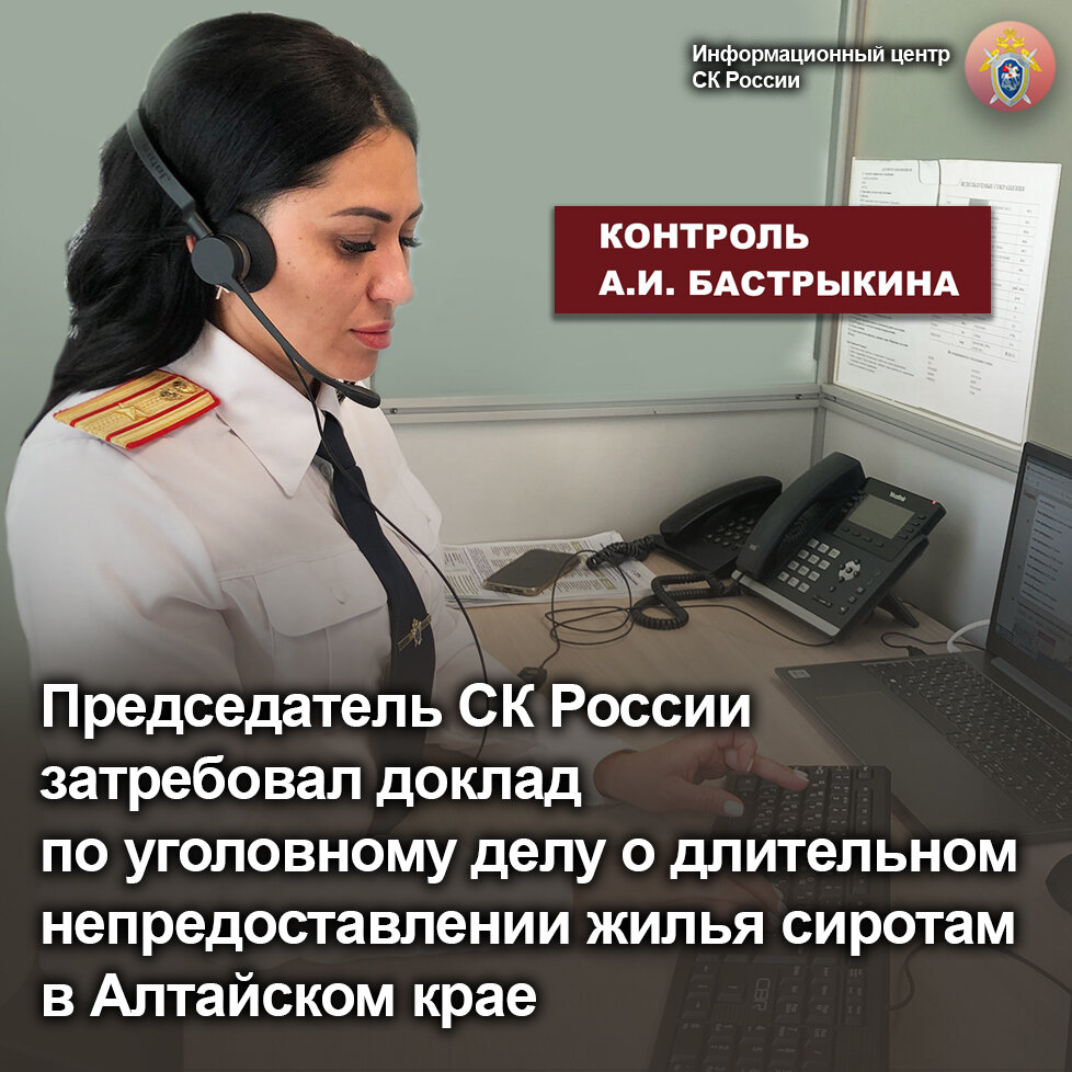 Председатель Следственного комитета Российской Федерации Александр Иванович Бастрыкин поручил руководителю СУ СК России по Алтайскому краю Игорю Владимировичу Колесниченко принять необходимые меры к завершению расследования уголовного дела и направлению его в суд, а также представить доклад в том числе о принимаемых