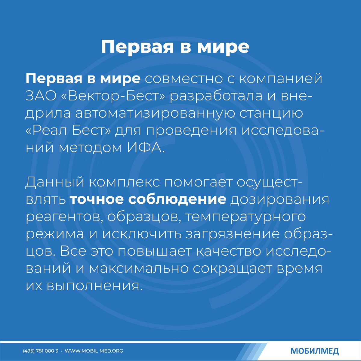 В мире технологий, который постоянно развивается, невозможно стоять на месте. Именно поэтому в МобилМед мы следим за новейшими разработками в сфере медицинских обследований, внедряем наиболее оптимальные и используем современные IT решения, оборудование, реактивы ведущих производителей.