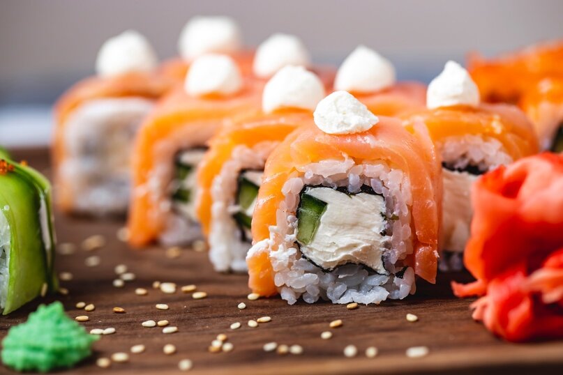 Невозможно себе представить такие роллы, как Филадельфия или Калифорния без наисвежайшего филе лосося. Лосось — очень полезная рыба, богатая белком и аминокислотами. Огромной заслугой является наличие в ней омега-3, которая борется с воспалительными процессами. Наукой доказано, что люди, регулярно употребляющие в пищу красную рыбу, обладают хорошим зрением до самой старости. Страна с самым большим потреблением лососевых – это Япония. Несмотря на ежегодную добычу в неимоверных масштабах этой рыбы, а также наличие ферм, где специально выращивают его на продажу, в рестораны и кафе, страна восходящего солнца дополнительно закупает рыбу у других государств. Свежий лосось в большинстве своем, не используется для приготовления суши и роллов, обычно такая рыба применяется в слабосоленом виде. В ресторанах, чтобы как можно дольше сохранить рыбу, тушки лосося разделывают, филируют и засаливают. Такой подход мы рекомендуем использовать и в домашних условиях. После приобретения свежего лосося, лу