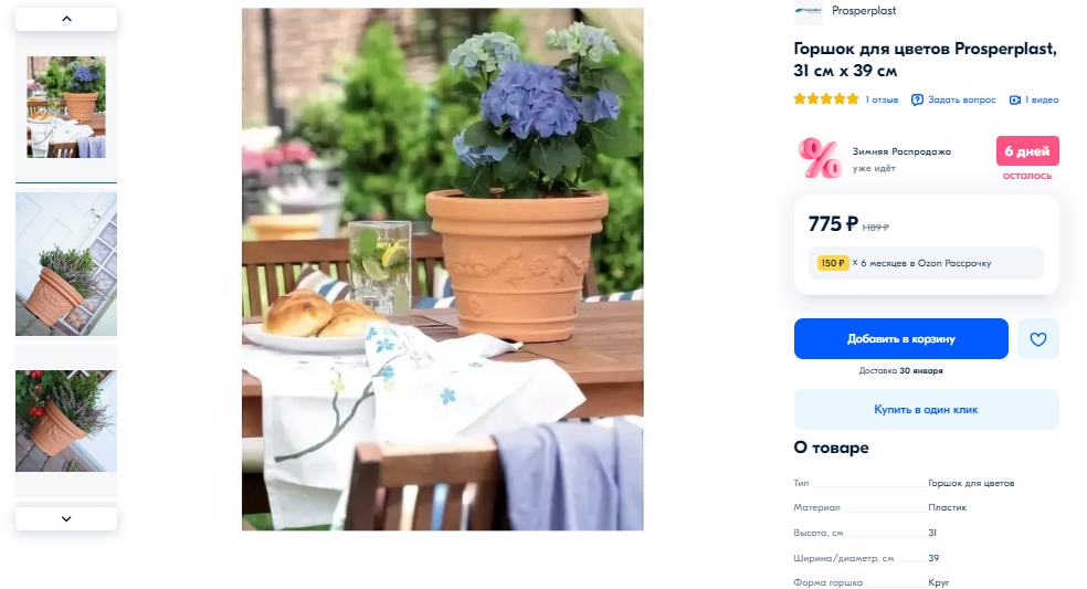 Из этой же серии мне достался последний горшок на 30л по цене 1129р. Не так чтобы дешево, но не купить было никак невозможно. Ссылка на этот товар тут. Его тоже больше нет, но вдруг завезу снова.