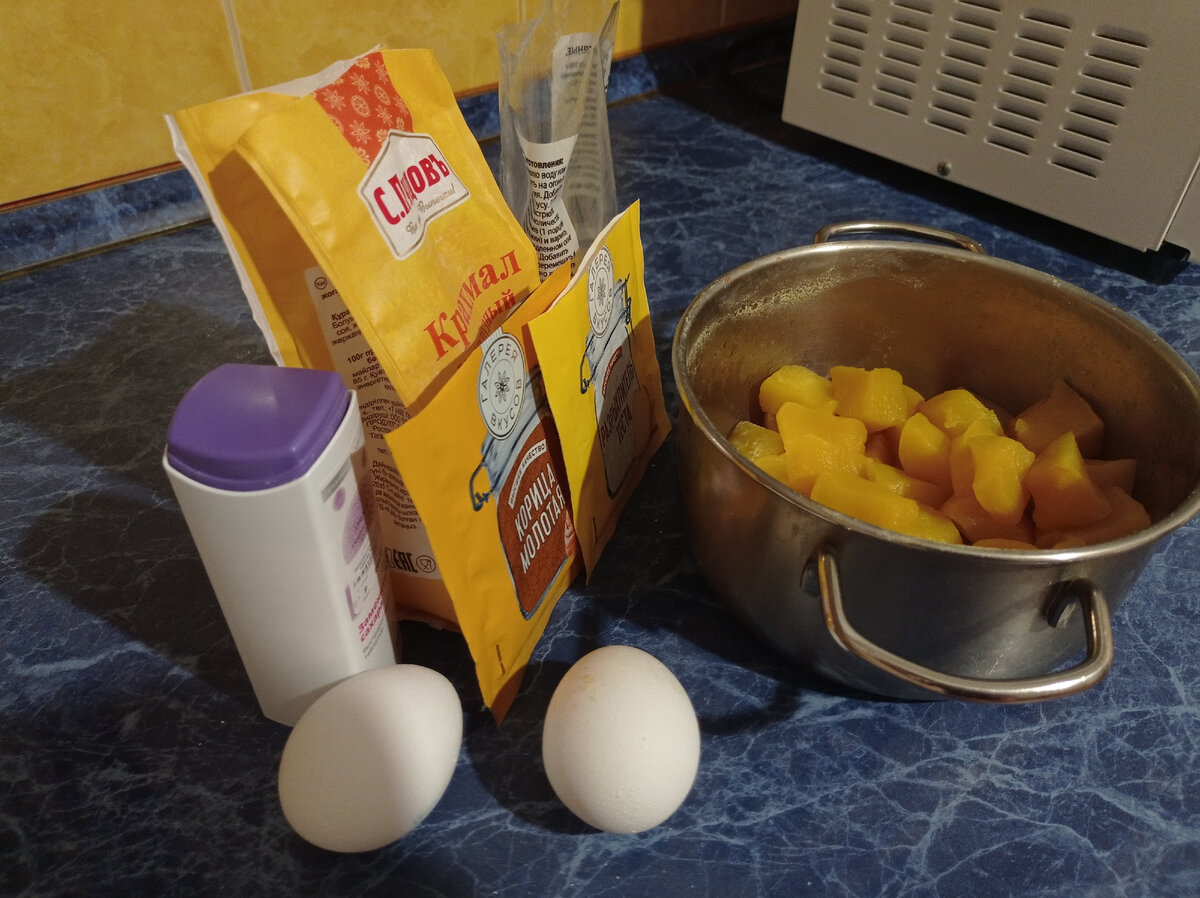 Всем доброго времени суток. Рецепты с тыквой продолжаются. Ещё один интересный рецепт диетического блюда из тыквы для тех, кто не в силах отказаться от любимой выпечки. Для этого десерта лучше использовать мускатные сорта тыквы. Ароматный и яркий кекс с пряными нотками специй станет идеальным дополнением к чаю или кофе. А для большей сладости можно дополнить кекс низкоуглеводным сиропом. Видео-рецепт прилагаю. Необходимые ингредиенты на фото: И на слайде ниже точно в граммах: Тыкву предварительно отвариваем, сливаем жидкость. Перекладываем в миску, добавляем яйца и хорошо пробиваем блендером до однородного состояния. Лучше пробивать блендером, а нее разминать вилкой или толкушкой, чтобы не было волокон в кексе. Далее к тыквенной массе добавляем кукурузный крахмал (1ст.л.), разрыхлитель, корицу и сахзам по вкусу, щепотку соли, овсяные хлопья. Я овсяные хлопья предварительно промывала от лишней трухи. Все хорошо перемешиваем. Выстилаем форму пергаментом или смазываем маслом и перелив