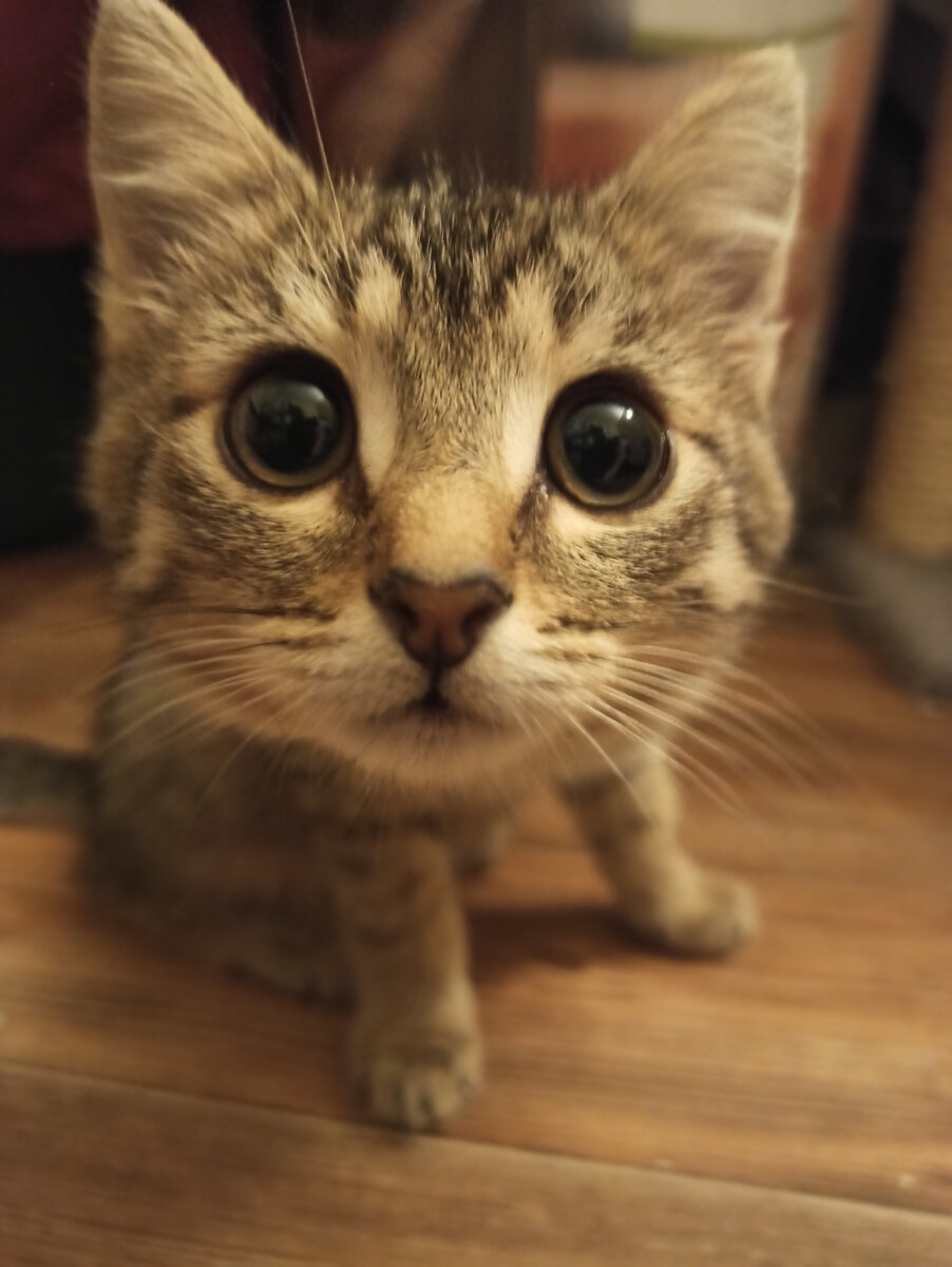 Она наша самая маленькая малышка в кошачьем царстве. Лишнего не спросит, второй раз не попросит. Одно название - Долька! Этот котенок совсем не выделяется из нашей компании. Долька даже если голодная, то где-нибудь в стороночке будет терпеливо ждать завтрака, обеда и ужина. Ей по голове в ожидании порции пробегут другие наши обитатели, а она только крепче сожмет в своих маленьких лапках такую маленькую обеденную ложку. Ну... Красивая. Нежная. Такая Дюймовочка. Такие, если очеловечить, вырастают в будущем очень умненькими и целеустремленными. В этой маленькой головушке большой мир. Возможно даже со сверхдостижениями;) Дольку мы забрали из детского садика, где её родила дикая кошка. Поэтому первое время Долька только выглядывала из своих укрытий и подергивала своими хрупкими плечиками, всем видом показывая, что хрупкость костей не влияет на ее отвагу сдаться без боя. Путь к сердцу этой маленькой кошечки мы конечно же нашли! Сегодня мы с Долей хорошие друзья. Берем ее на ручки: тискаем,