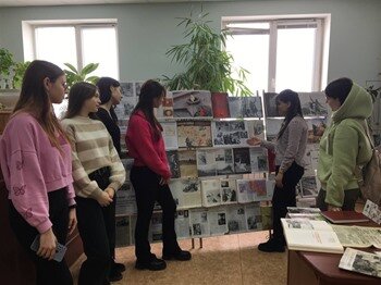 В читальном зале научной библиотеки Волгоградского ГАУ в эти дни проходит выставка «Великая битва на Волге», посвященная 80-летию разгрома советскими войсками немецко-фашистских войск в Сталинградской битве. Студенты, обучающиеся по направлению «Туризм» (гр. ИНОТ211, гр. ЭКФобТ221, гр. ЭКФобТ201) под руководством доцента кафедры «Агротуризм и сервисные технологии» Т.Л. Косульниковой посетили выставку, чтобы приобщиться к торжественным мероприятиям, проводимым в нашем городе, а также с целью знакомства и использования впоследствии фонда библиотеки в своей будущей профессиональной деятельности, в том числе в качестве экскурсовода. Экспозиция выставки начинается материалами о преподавателях-фронтовиках, в том числе о Евгении Федоровиче Рогове, 17-летнем участнике Сталинградской битвы, а ныне – почетном гражданине Волгоградской области. Буквально завораживают сегодняшние газеты, в которых запечатлены страницы тех огненных лет: «На защиту Родины» № 32 от 03.02.1943 г. и «Сталинградская прав
